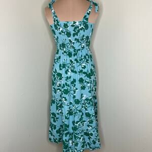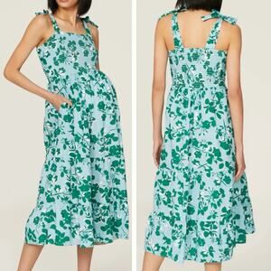 Seraphine Gianna Maternity Dress w Pockets 6 Tiered Blue Green Smocked Midi Tie