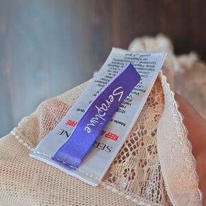 A beautiful and incredibly comfortable longline bralette from the maternity and nursing brand, Seraphine. This bralette features a delicate lace overlay in a soft pink or cream color (listed as "Soft Pink" or "Cream" in the metadata, please confirm exact shade). The wireless design and stretchy fabric provide gentle support and comfort, making it perfect for everyday wear, light activity, or as a maternity/postpartum piece, though it can be worn by anyone. The wide band of lace offers a fashionable longline look.