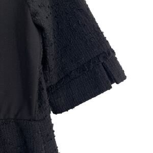 tweed shift dress, black textured dress, heritage style dress, modern classic, luxury minimal, office chic outfit, special event dress, elevated basics, timeless wardrobe piece, maternity chic