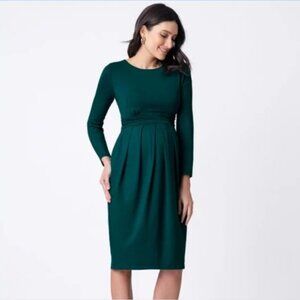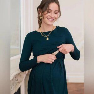 Beautiful - and comfy - "Nursing Pleat Detail Dress" known as the "Peachy" dress in a dark/forest green color ("Emerald"). Gorgeous color for the seasonal parties and holidays or special occasions.