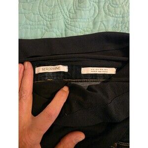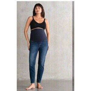 The Seraphine Size 12 KAI Indigo Organic Cotton Over Bump Skinny Maternity Jeans are stylish and comfortable jeans designed for maternity wear. Made from a blend of organic cotton, polyethylene, spandex, nylon, and modal, these jeans offer a low rise fit with a 27-inch inseam. The dark wash denim is accented by a solid blue color, making them versatile for all seasons. Additionally, the jeans feature an elastic waist for added comfort and convenience, and are machine washable for easy care. Perfect for a growing belly, these jeans provide shaping and support while maintaining a breathable and lightweight feel.