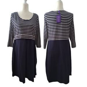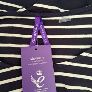 Seraphine Women's Navy Stripe 3/4 Sleeve Nautical Simone Dress Maternity Sz 14