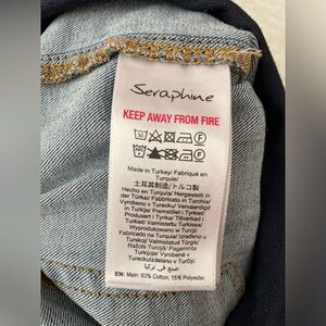 Super comfy maternity jeans from Seraphine. There is small yellow paint stain on the right leg, just above the knee (see photos). These are size 10 but fit as 10/12.