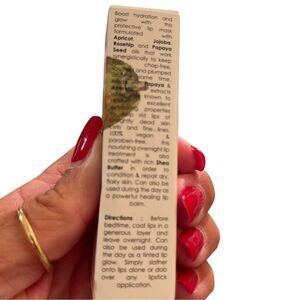 Before bedtime, coat lips in a generous layer and leave overnight. Can also be used during the day as a tinted lip glow. Simply slather onto lips alone or dab over any lipstick application.