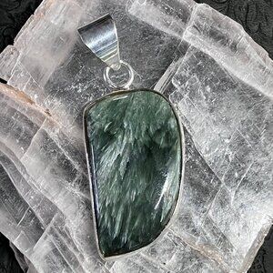 Pendant of a stunning natural seraphinite crystal stone in a 925 silver plated frame.