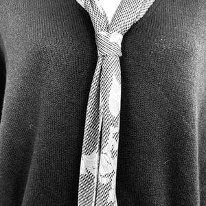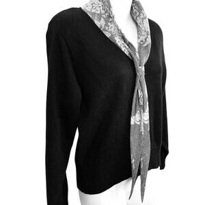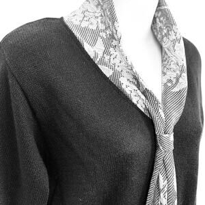 Serbin Vintage Black Knit Long Sleeve Sweater USA Made Silver Scarf Attached 8
