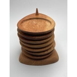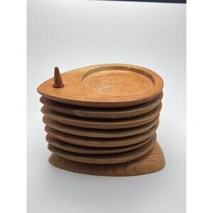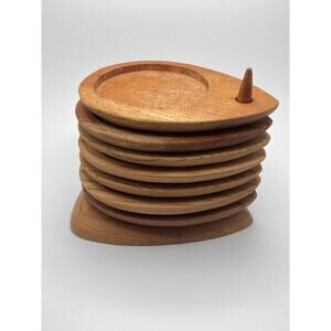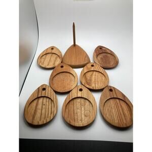 Sere 7 Hardwood Teardrop Coasters w/ Cork Backing w/ Stand Mid-Century Modern