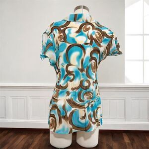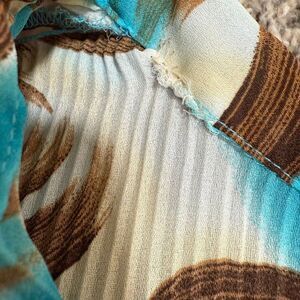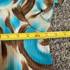 Sere Nade White Teal Brown Crinkle Ruffle Blouse Top Swirl XL Y2K