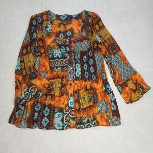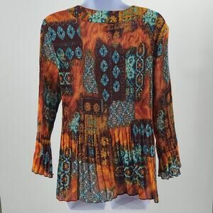 This is a beautiful Sere Nade blouse in excellent preloved condition! The brown color is perfect for any season, and the mini pleated flare cuff peasant/boho style is sure to turn heads. The size is XL, but please see the pictures for measurements to ensure a proper fit. This blouse is perfect for work, career events, or a night out. It's funky, quirky, and sure to make you stand out from the crowd! Phoebe Buffay vibes! Perfect colors for fall vibes!