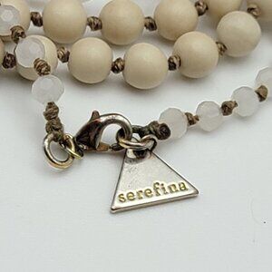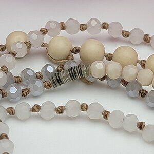 Serefina Crystal And Agate Beaded Necklace 36 Inch Beige Silver Tone Clasp Boho