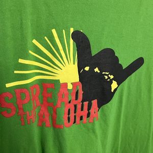 Seren Spread The Aloha Mens Medium Green T-Shirt Hang Loose Short Sleeve Very Good Condition