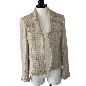 Serena Kay Paris Womens Jacket Size 44 Beige Textured Open Tweed Pockets