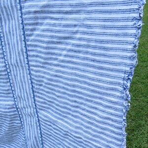 Serena & Lily Stone Harbor Linen Duvet Cover Full/Queen Blue Ticking Stripes