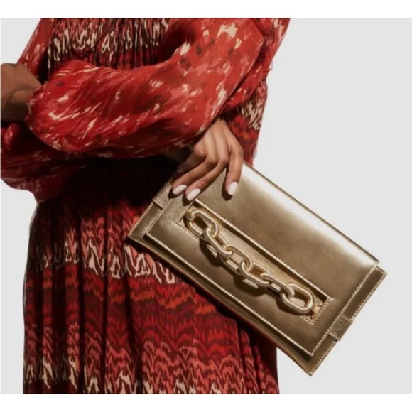 Serena Uziyel Women's Gold Catena Envelope Metallic Leather Clutch Bag