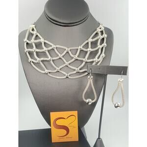 Serena Williams Signature Collection Woven Mesh Bib Necklace & Earrings Set NIB