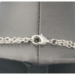 Necklace is a beautiful silver-tone openwork mesh design with crystal accented beads. A double strand chain begins at etched bib endcaps and fastens with a lobster-claw clasp.