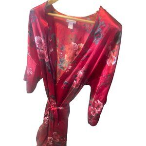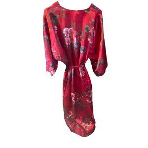 Serenada Red Satin Floral Belted Long Robe Sz 1X