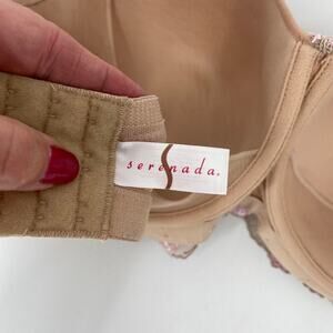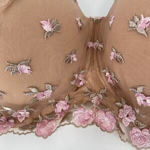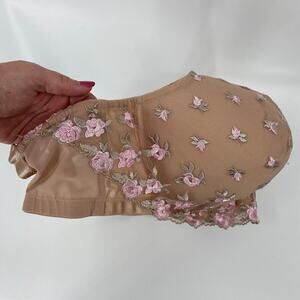 Serenada Underwire Bra Size 42DDD Beige Pink Embroidered Floral Overlay