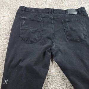 Serenade Jeans Mens 44x32 Black Slim Distressed Dark Wash Denim