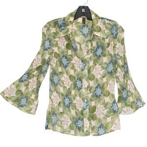 Serenade Top 3/4 Sleeve Floral Cottage Boho Y2K Retro Pleated Button Up Medium