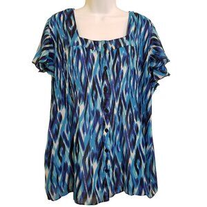 Serenade VTG Blouse Women's 3X Stretch Crinkle Short Sleeve Square Neck Button