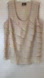 Serenade sleeveless top in nude color with cascading ruffle, lightweight and flattering.