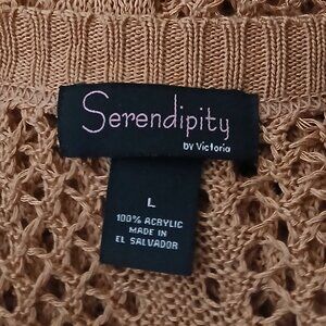 Serendipity L Open Long Knit Duster Vest Cardigan Clay Bohemian Pointelle