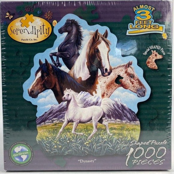 Sealed New Serendipity Puzzle Co. Dynasty Shaped 1000 Piece Jigsaw Puzzle; Horses