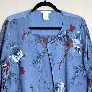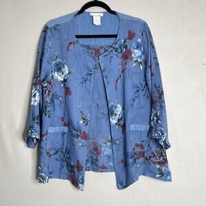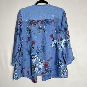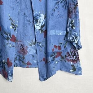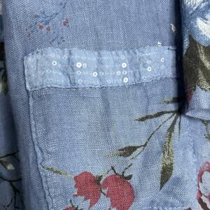Serengeti Artsy Open Linen Jacket Sz L floral Sequins Pockets Lagenlook Italy