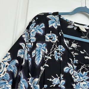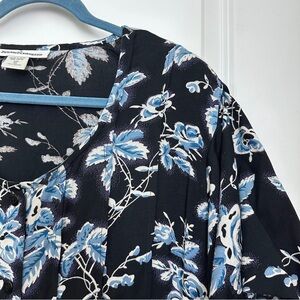 Serengeti Black Floral Button Front Midi Dress Women’s Plus Size 3X Cottage 90s