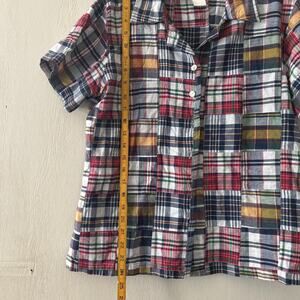 The Serengeti Catalog Check Plaid short sleeves top is a stylish and comfortable option for women. Made from 100% cotton, this button-up shirt features a medium blue and red plaid pattern, perfect for adding a pop of color to any outfit. With its short sleeve design and roll tab sleeve option, this top is versatile and can be dressed up or down for any occasion. Pair it with jeans for a casual look or dress it up with shorts and heels for a more formal event.