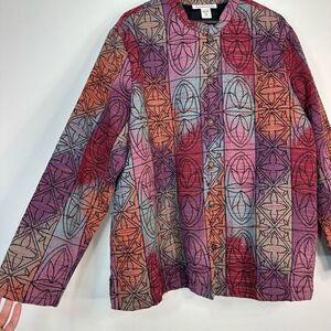 Serengeti Colorful Quilted Artsy Embroidered Jacket Womens 2X Boho Ornate Button