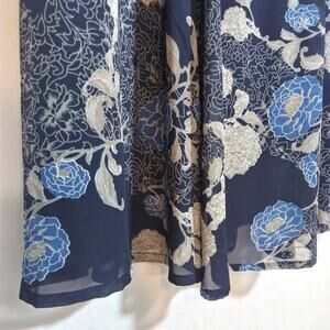 Serengeti Dark Romantic Blue Floral Chiffon Midi Skirt Pull On Waist Sz Small