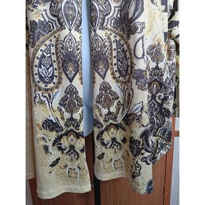 Serengeti paisley print duster in shades of taupe & black. Size 4X