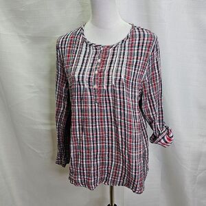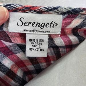 Serengeti Red and Blue Cotton Plaid Pullover Tunic Size Large