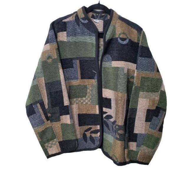 Serengeti Tapestry Colorblock Leaf Print Jacket Black Green Beige Women's 1X