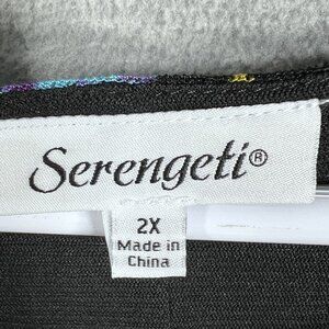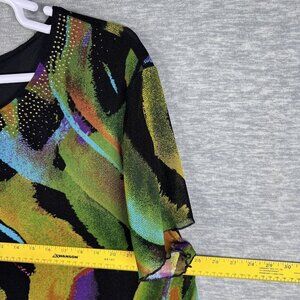 Serengeti Womens 2X Sparkling Aurora Mesh Tunic Top Faceted Stud Accents Yoke Lettuce Hem Flutter Sleeve Abstract Design Artsy Art To Wear