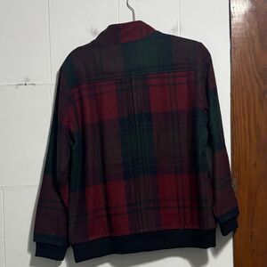 Serengeti tartan plaid red green wool blend bomber coat medium