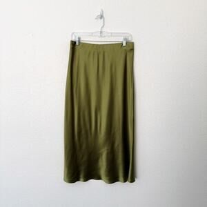 [Serenity] Olive Green Elastic Waist Pull On Silk Satin Midi Slip Skirt NWT XL