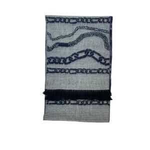 Serentia Cashmere Feel Scarf Wrap Chain Link Blue Knit Reversible Oblong 12x70