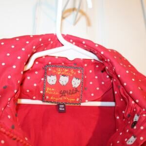 Sergeant Major Les Classe de Malice Red Kitty Print Cotton blend jacket with detachable hood. size 3 ANS.