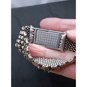 Stunning SG Sergio Gutierrez Liquid Metal Silver Mesh Cuff Bracelet with beautiful crystal center stone