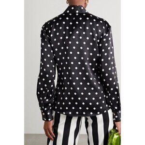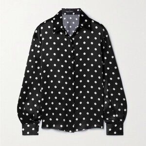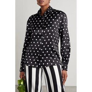 Sergio Hudson Polka Dot Silk Charmeuse Button-Up Blouse, Black/White XS NWT $795