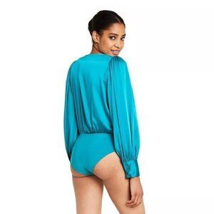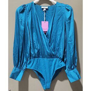Sergio Hudson Size Small Turquoise Metallic Blue Crossover Front Satin Bodysuit