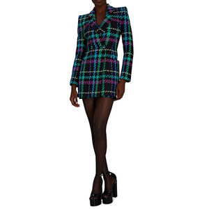 Sergio Hudson Women Double Breasted Blazer Dress Black Plaid Size 4