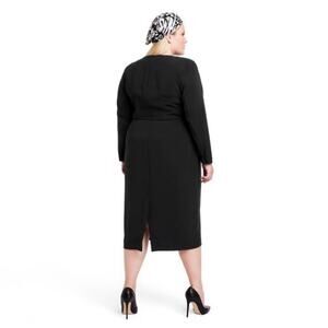 Sergio Hudson X Target Dress Black Strong Shoulder Long Sleeve Midi Plus Size 2X