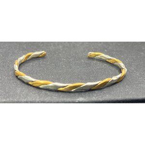 Vintage Sergio Lub copper and silvertone cuff bracelet .. This elegant piece adds a touch of sophistication to any outfit, showcasing a blend of artistry and timeless style.