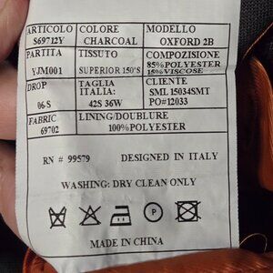 Sergio Martini Superior 150s Charcoal Gray Two Button Front Suit Jacket, 42R