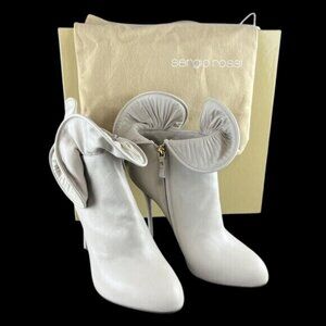 Sergio Rossi, luxury heels, ruffle booties, sculptural shoes, statement heels, Italian designer shoes, white stiletto boots, couture footwear, evening shoes, runway heels, rare designer booties, high-end shoes, collector heels, bridal shoes, special occasion shoes. fairycore, princess,