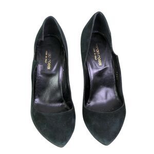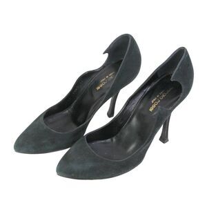 Sergio Rossi BLACK REAL LEATHER SUEDE HIGH HEEL POINTED CLASSIC PUMP SHOES Sz 37